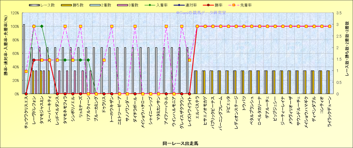 ライバル(相性)解析 同一レースに下記馬が出走した場合の成績とその馬に先着する先着率 |