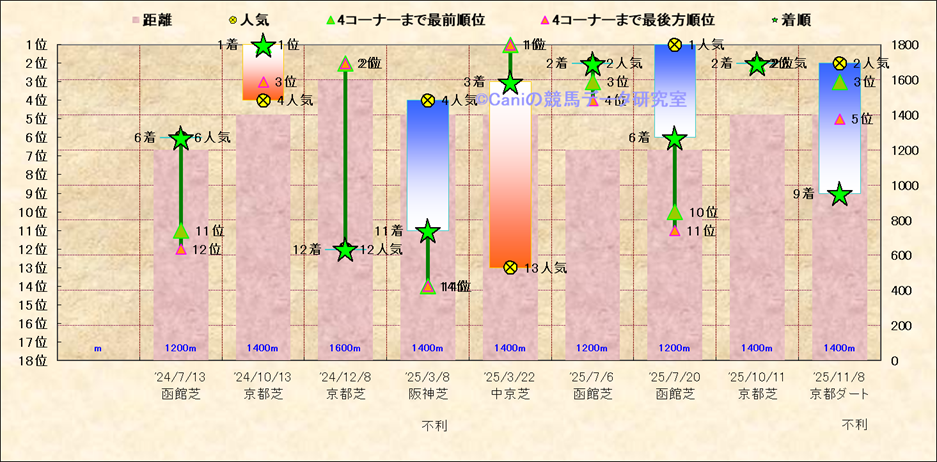 近10走 人気−着順-位置取りの推移 |