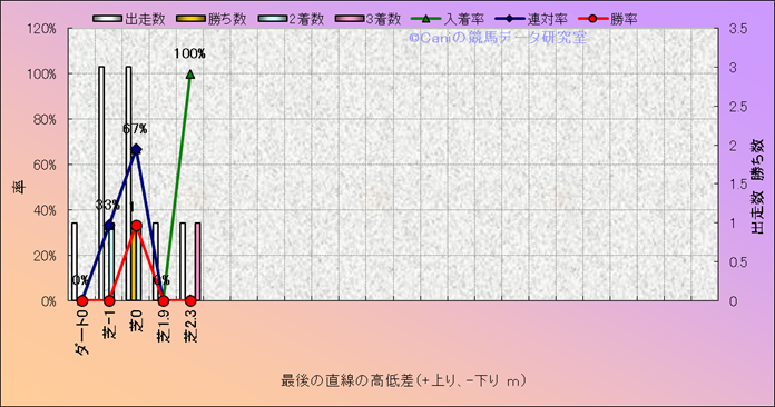 コース、最後の直線の高低差別成績(平地) |