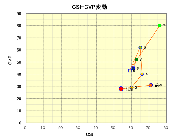走行距離とCSI値の相関 |