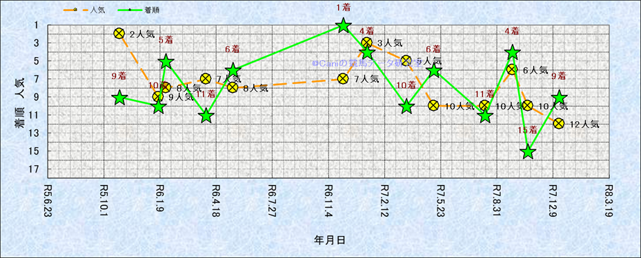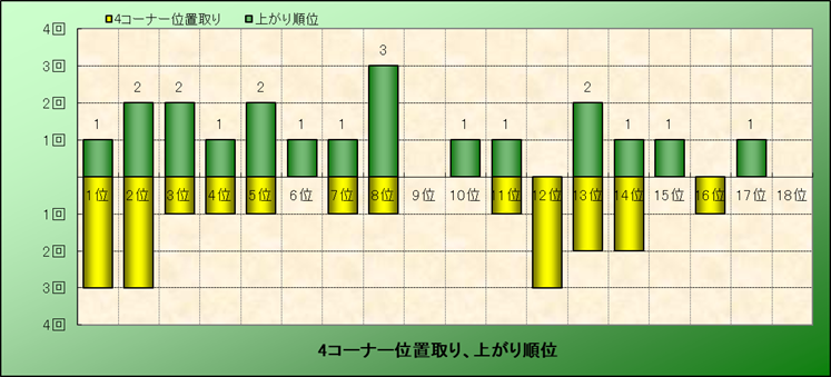 脚質解析 近20レースの4コーナーでの位置取りと上がり順位(頭数補正後) |