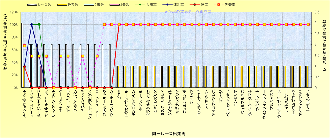 ライバル(相性)解析 同一レースに下記馬が出走した場合の成績とその馬に先着する先着率 |