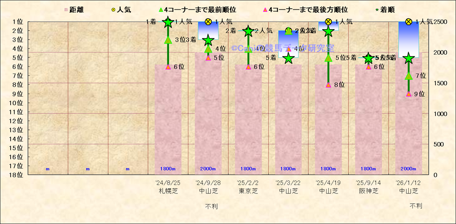 脚質解析 近20レースの4コーナーでの位置取りと上がり順位(頭数補正後) |