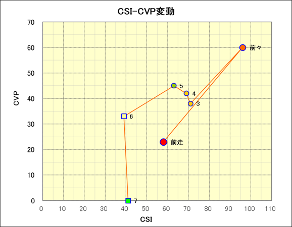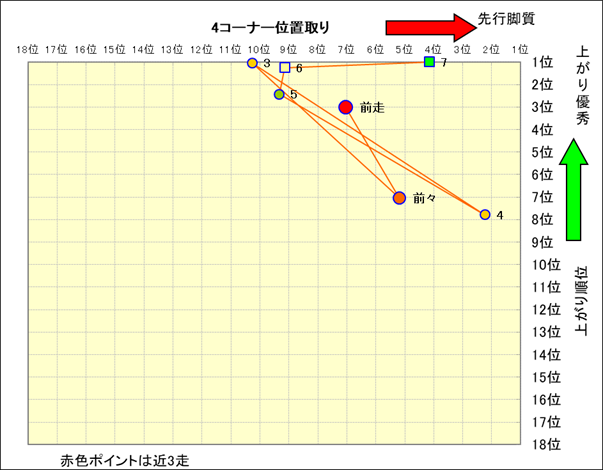近走における4コーナーでの位置取りと上がり順位(頭数補正後) |