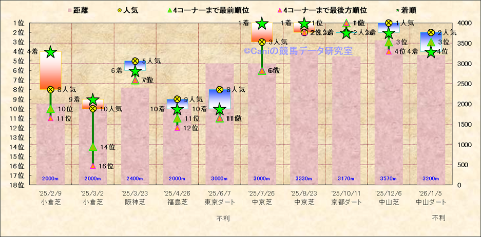 近10走 人気−着順-位置取りの推移 |