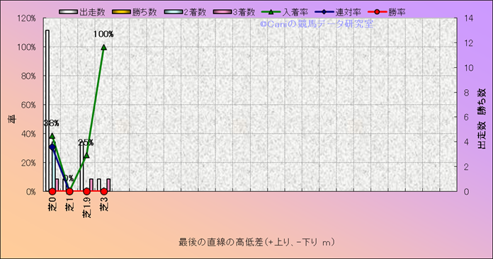 コース、最後の直線の高低差別成績(平地) |