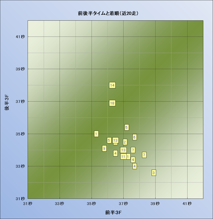 脚質解析 近20レースの4コーナーでの位置取りと上がり順位(頭数補正後) |