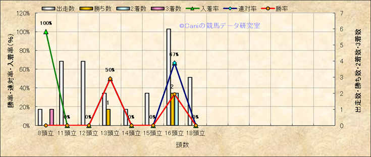 コース、最後の直線の高低差別成績(平地) |