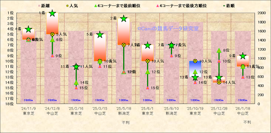 近10走 人気−着順-位置取りの推移 |