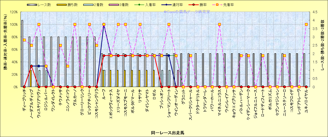 ライバル(相性)解析 同一レースに下記馬が出走した場合の成績とその馬に先着する先着率 |