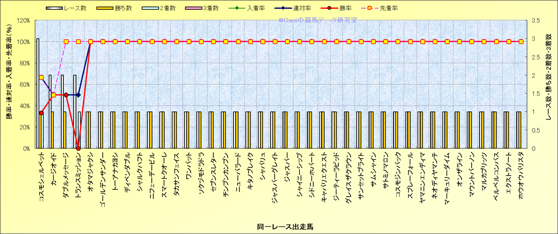 ライバル(相性)解析 同一レースに下記馬が出走した場合の成績とその馬に先着する先着率 |