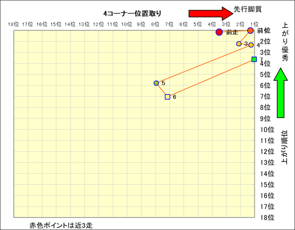 近走における4コーナーでの位置取りと上がり順位(頭数補正後) |