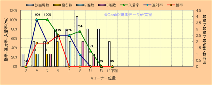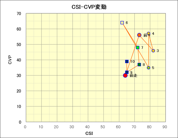 近走における4コーナーでの位置取りと上がり順位(頭数補正後) |
