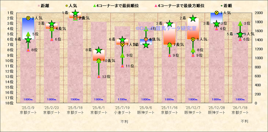 近10走 人気−着順-位置取りの推移 |
