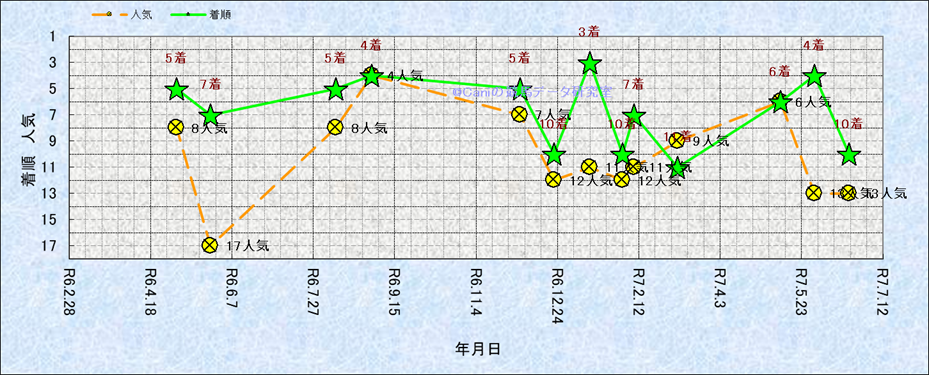 脚質解析 近20レースの4コーナーでの位置取りと上がり順位(頭数補正後) |