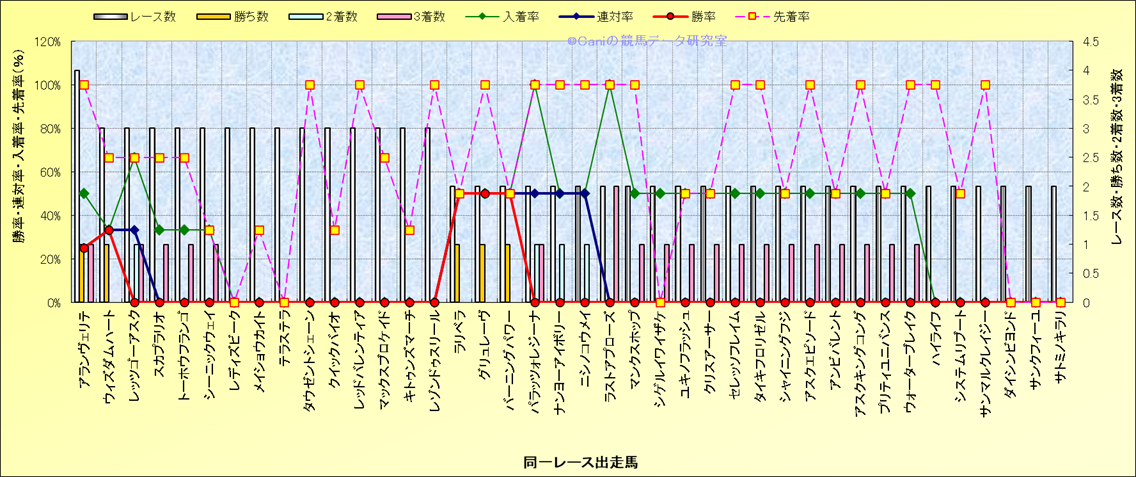 ライバル(相性)解析 同一レースに下記馬が出走した場合の成績とその馬に先着する先着率 |