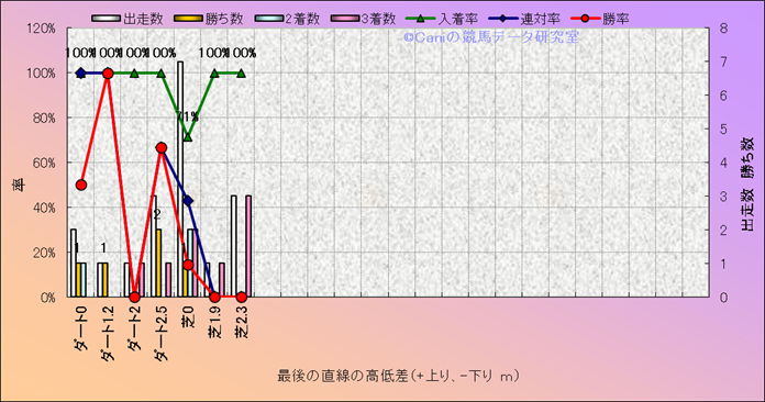 コース、最後の直線の高低差別成績(平地) |