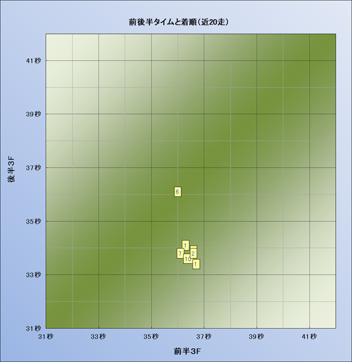 脚質解析 近20レースの4コーナーでの位置取りと上がり順位(頭数補正後) |