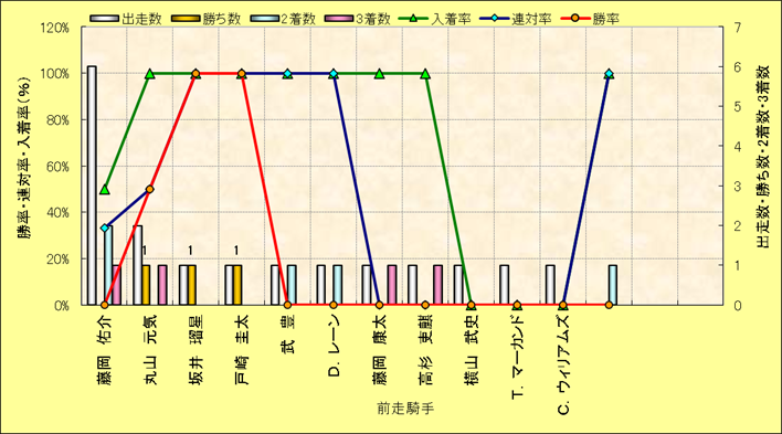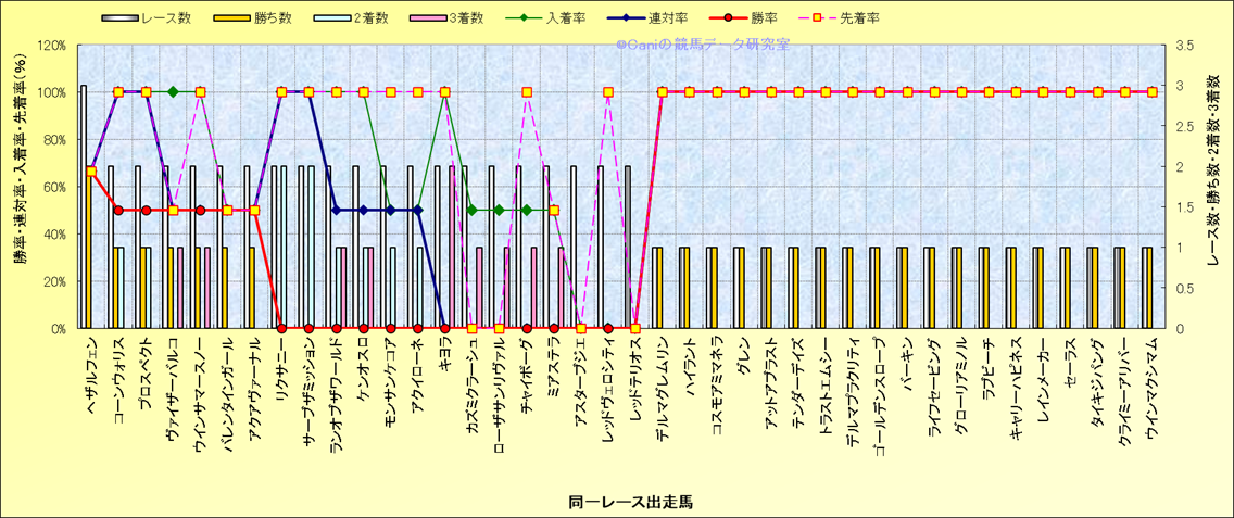 ライバル(相性)解析 同一レースに下記馬が出走した場合の成績とその馬に先着する先着率 |