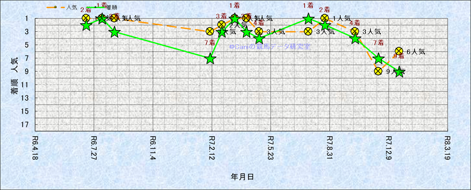 脚質解析 近20レースの4コーナーでの位置取りと上がり順位(頭数補正後) |