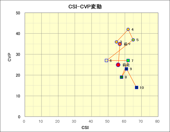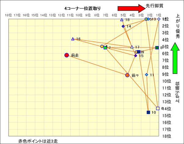 近走における4コーナーでの位置取りと上がり順位(頭数補正後) |