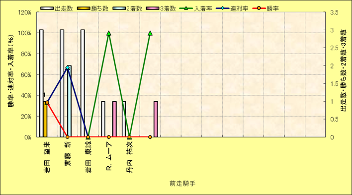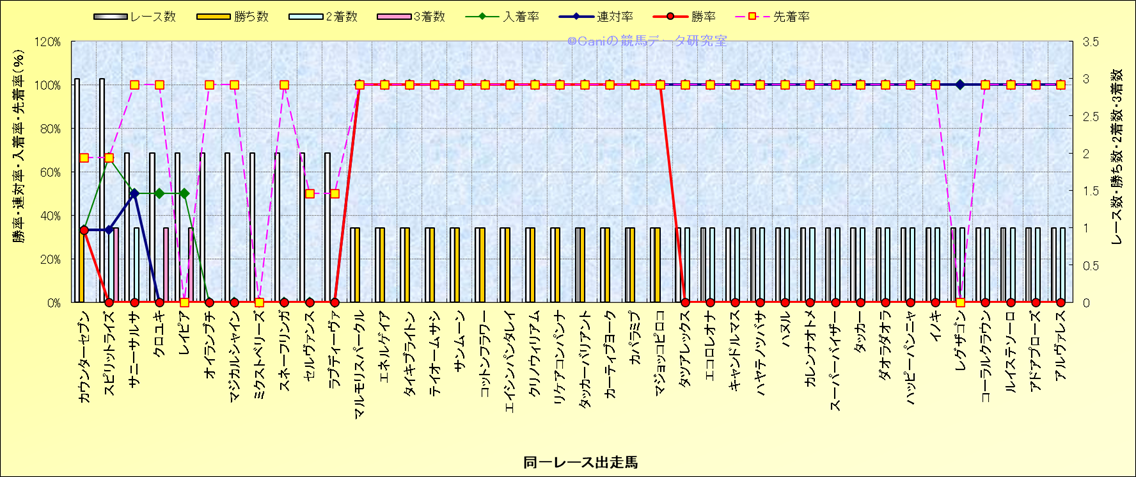 ライバル(相性)解析 同一レースに下記馬が出走した場合の成績とその馬に先着する先着率 |