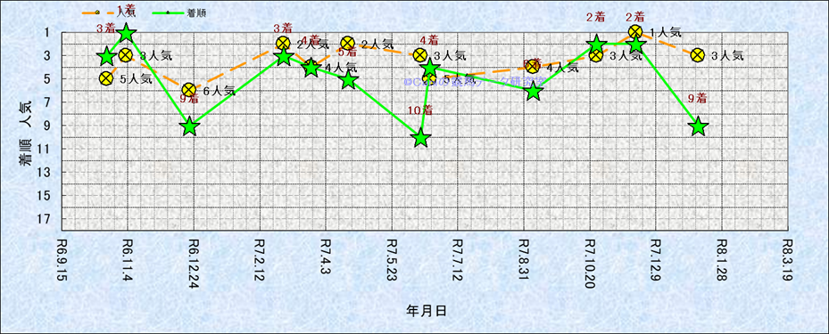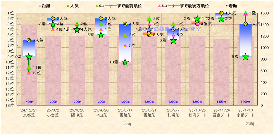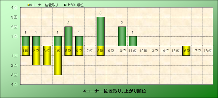 脚質解析 近20レースの4コーナーでの位置取りと上がり順位(頭数補正後) |