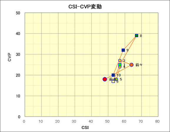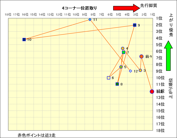 近走における4コーナーでの位置取りと上がり順位(頭数補正後) |