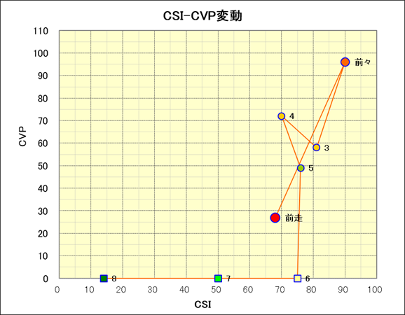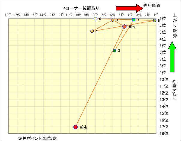 近走における4コーナーでの位置取りと上がり順位(頭数補正後) |
