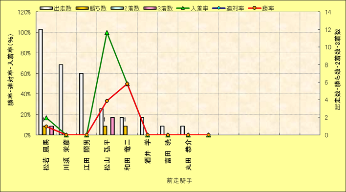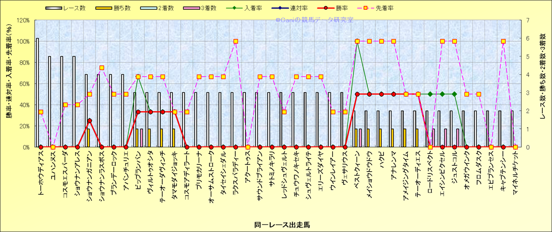 ライバル(相性)解析 同一レースに下記馬が出走した場合の成績とその馬に先着する先着率 |