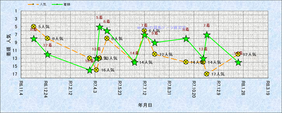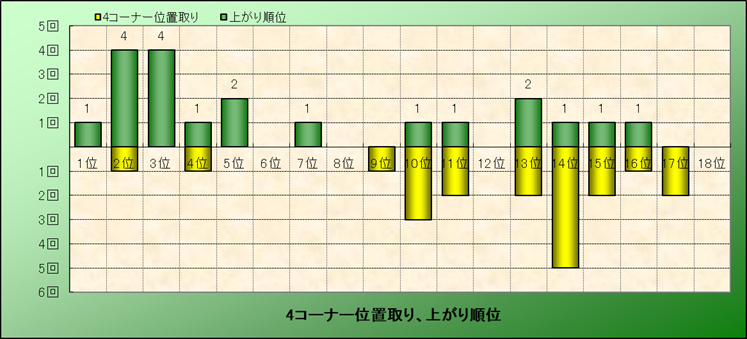 脚質解析 近20レースの4コーナーでの位置取りと上がり順位(頭数補正後) |