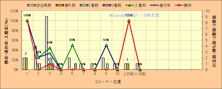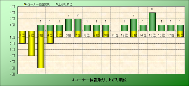 脚質解析 近20レースの4コーナーでの位置取りと上がり順位(頭数補正後) |