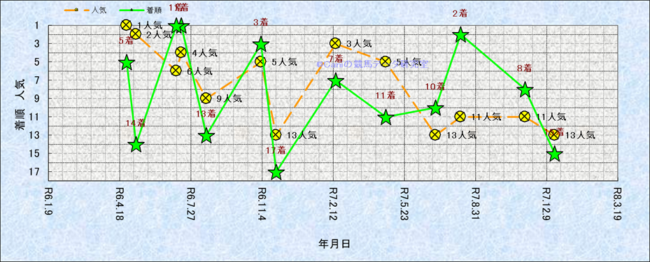 近走における4コーナーでの位置取りと上がり順位(頭数補正後) |