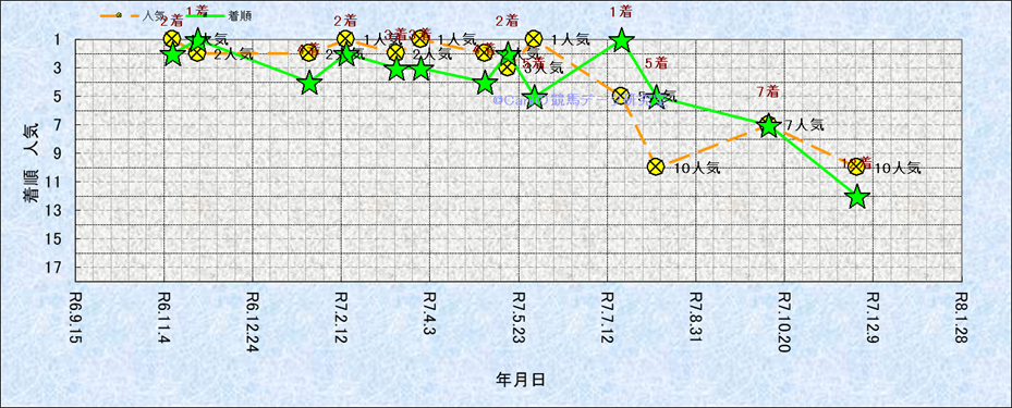 近走における4コーナーでの位置取りと上がり順位(頭数補正後) |