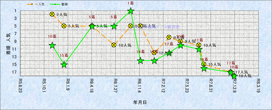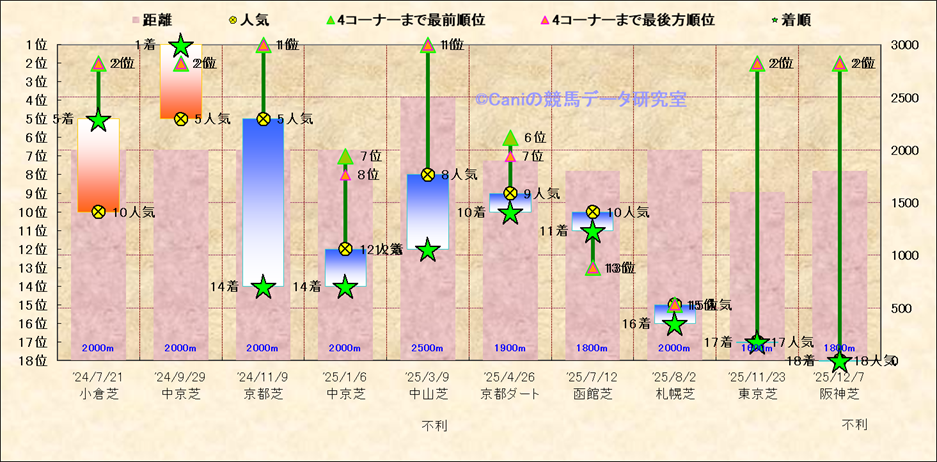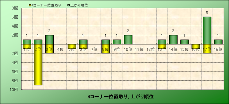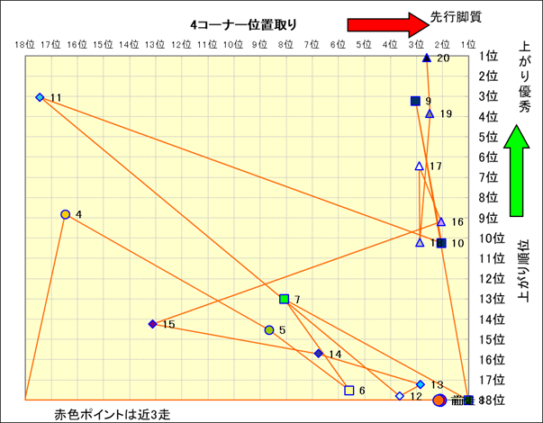 脚質解析 近20レースの4コーナーでの位置取りと上がり順位(頭数補正後) |