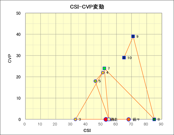 近走における4コーナーでの位置取りと上がり順位(頭数補正後) |