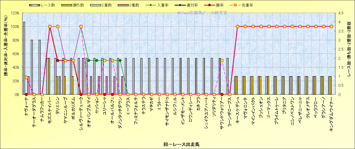 ライバル(相性)解析 同一レースに下記馬が出走した場合の成績とその馬に先着する先着率 |