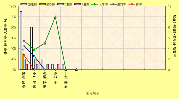 ライバル(相性)解析 同一レースに下記馬が出走した場合の成績とその馬に先着する先着率 |