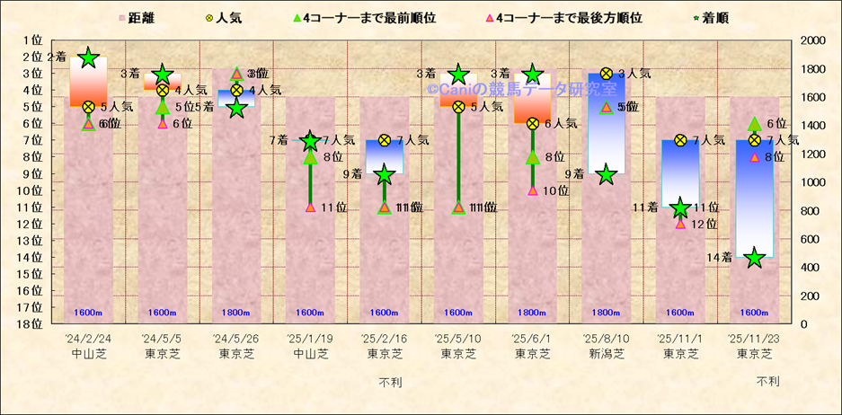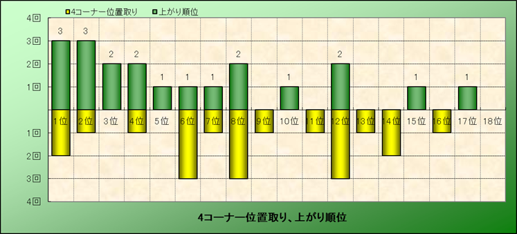 脚質解析 近20レースの4コーナーでの位置取りと上がり順位(頭数補正後) |