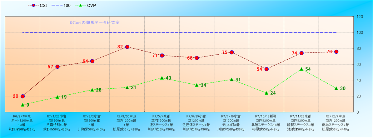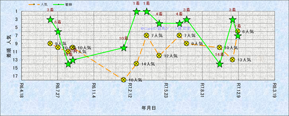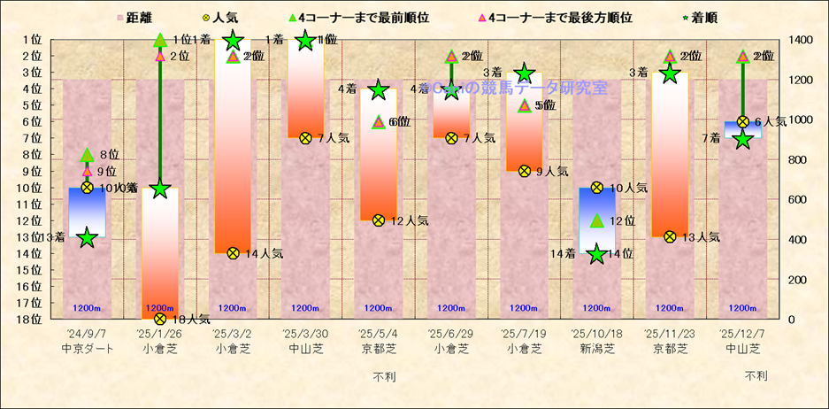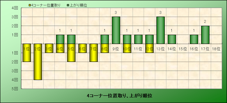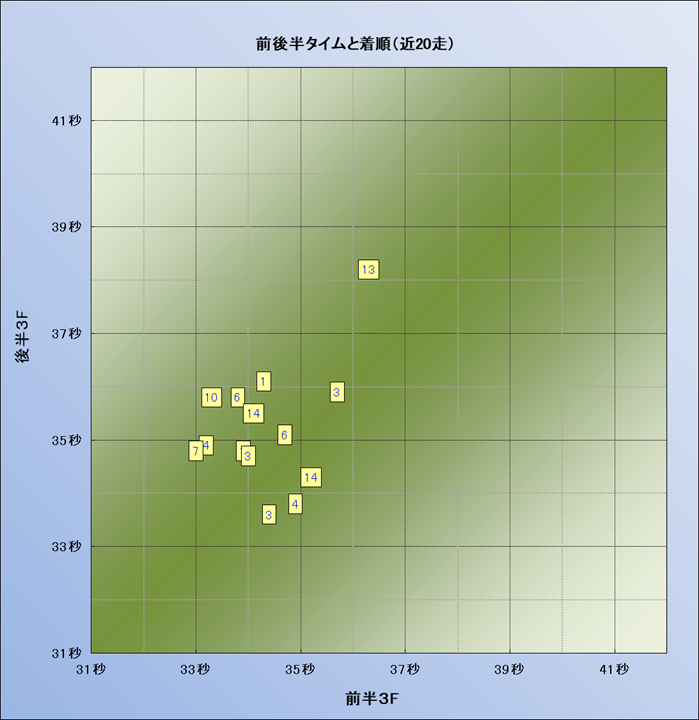 脚質解析 近20レースの4コーナーでの位置取りと上がり順位(頭数補正後) |