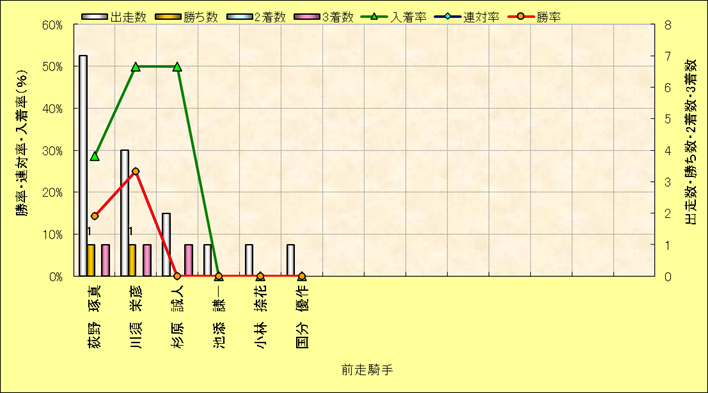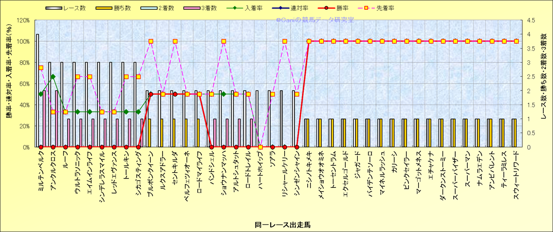 ライバル(相性)解析 同一レースに下記馬が出走した場合の成績とその馬に先着する先着率 |