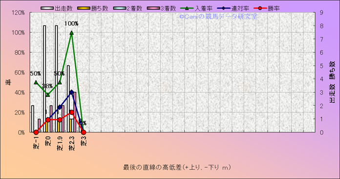 コース、最後の直線の高低差別成績(平地) |