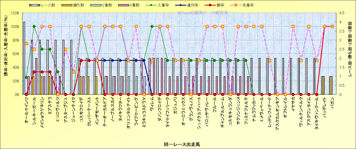 ライバル(相性)解析 同一レースに下記馬が出走した場合の成績とその馬に先着する先着率 |