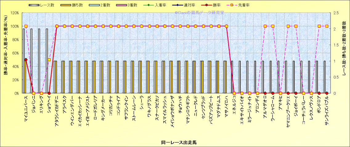 ライバル(相性)解析 同一レースに下記馬が出走した場合の成績とその馬に先着する先着率 |