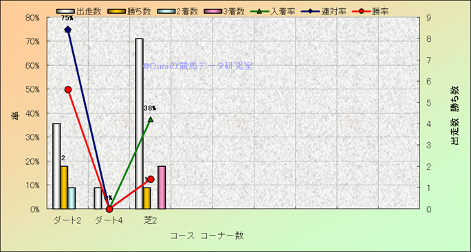 コース、コーナー数別成績(平地) |