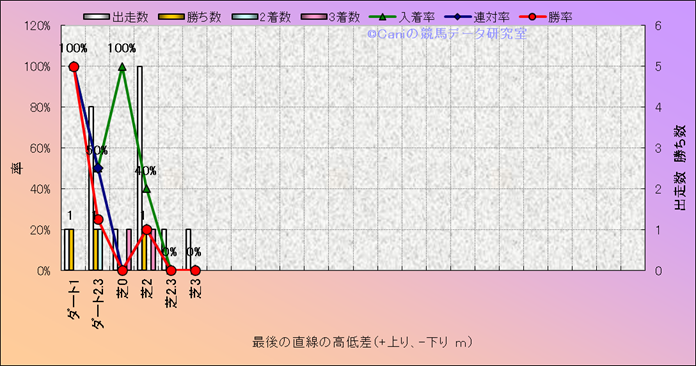 コース、最後の直線の高低差別成績(平地) |