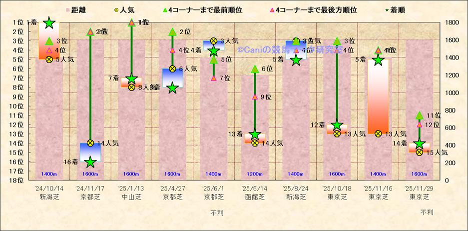近10走 人気−着順-位置取りの推移 |