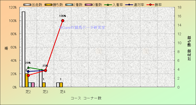 コース、コーナー数別成績(平地) |