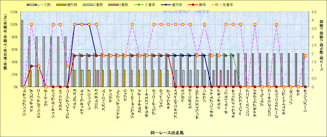 ライバル(相性)解析 同一レースに下記馬が出走した場合の成績とその馬に先着する先着率 |