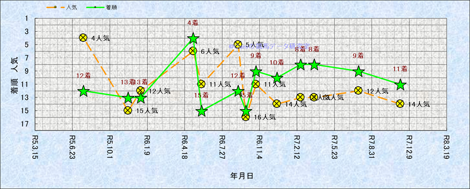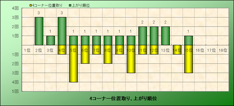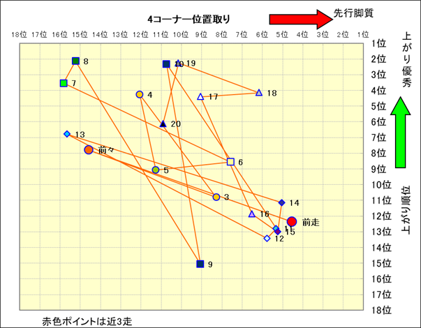 脚質解析 近20レースの4コーナーでの位置取りと上がり順位(頭数補正後) |